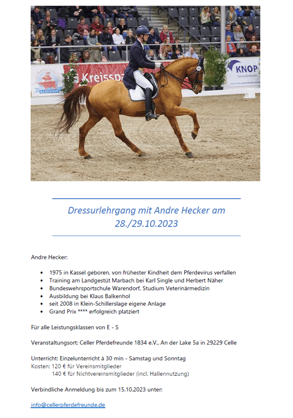 - Dressurlehrgang KRV Celle - Lehrgangsbörse